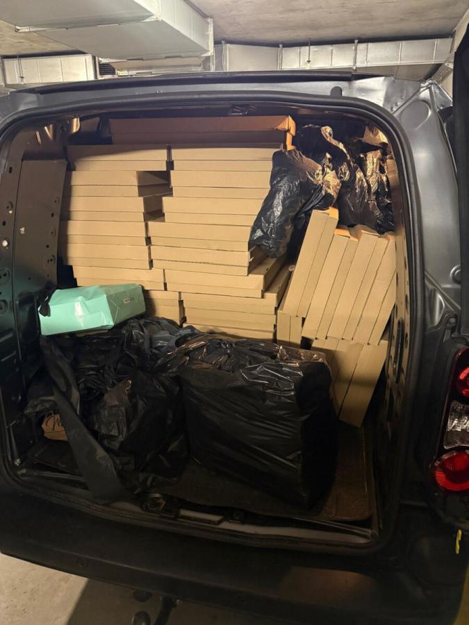 W pierwszej kolejności operacyjni skontrolowali jego Citroena. Bagażnik pojazdu był wypełniony tekturowymi opakowaniami typu „pizza” - łącznie 35 opakowań. Każde z nich zawierało 4000 sztuk papierosów. Dodatkowo znajdowało się tam prawie 1500 torebek foliowych z zapięciem strunowym, a w każdej z nich po 20 sztuk papierosów. Operacyjni zabezpieczyli od 46-latka ponad 2500 złotych i jego dwa telefony komórkowe.