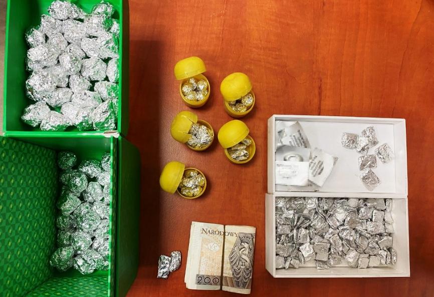 Następnie przeszukali lokal 39-latka, który był głównym celem ich działań. Znaleźli w nim różne pojemniki z poporcjowanymi substancjami w kolorze białym i beżowym, tabletki oraz gotówkę. Zatrzymali mężczyznę.
